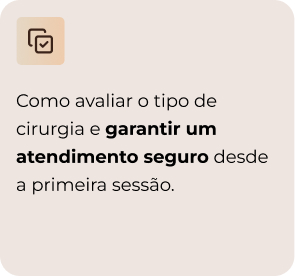 Durante a Imersão o MAPA você vai descobrir os segredos para atender os mais diversos pós-operatórios com excelência, além de dominar as chaves para evitar intercorrências.